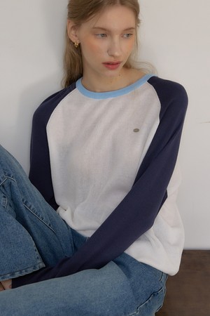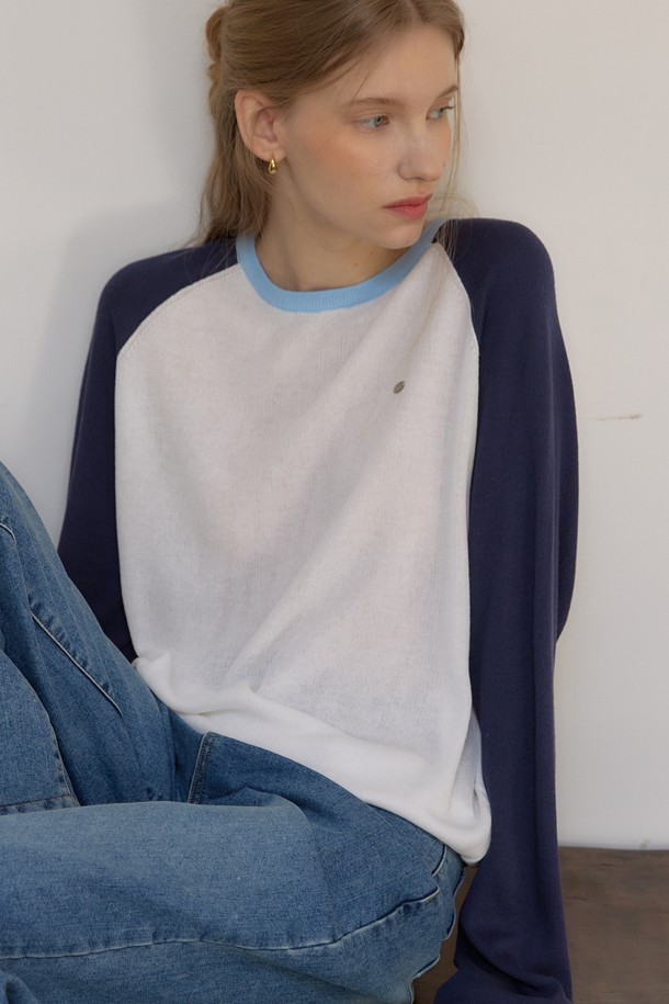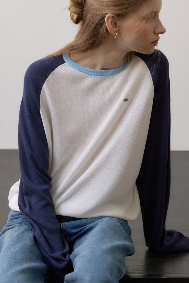 투톤 린넨 래글런 니트 - Navy