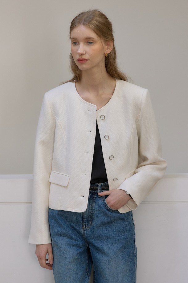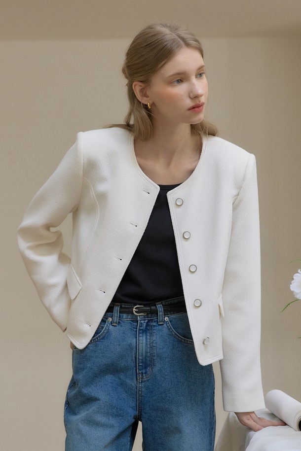 플로우 라인 트위드 자켓 - Ivory