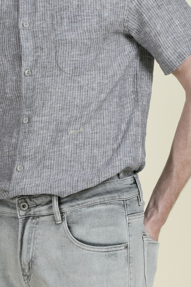 스트라이프 리넨 포켓 셔츠 D-QCSH16