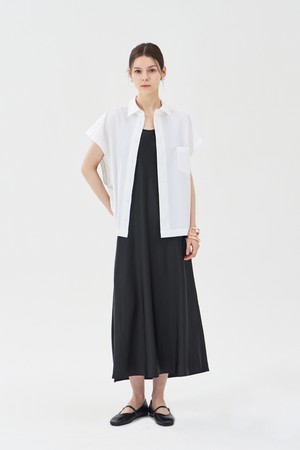 세미 오버핏 슬리브리스 셔츠 화이트