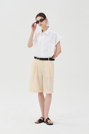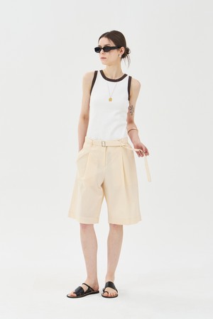 벨티드 원턱 버뮤다 팬츠 베이지