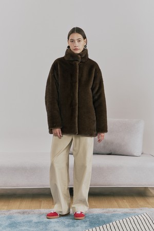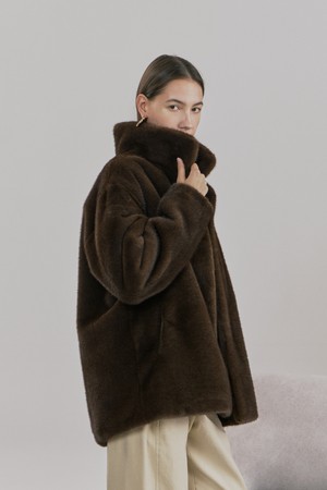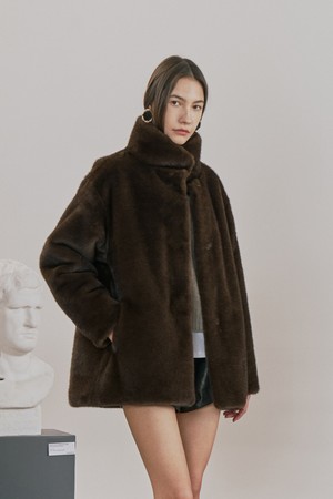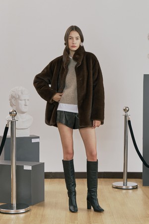 하이넥 밍크 퍼 자켓 브라운