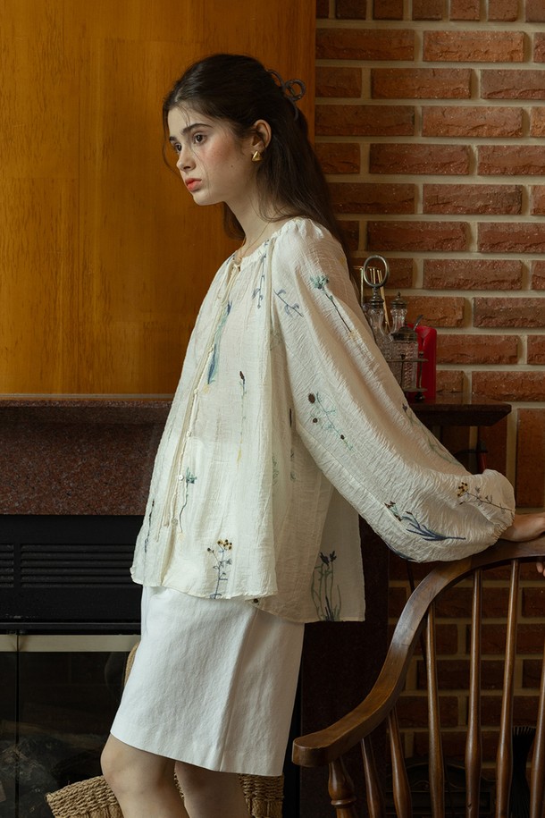 Loose flower shirt_IVORY