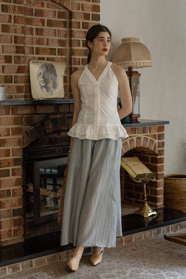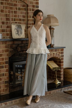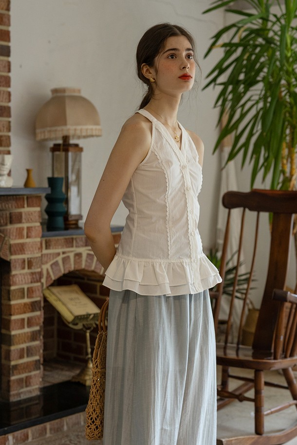 Pleated hem sleeveless top_WHITE