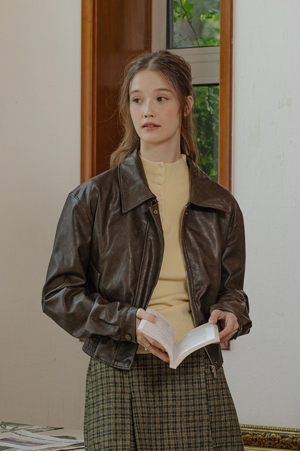 Slim-fit pleated leather jacket_2color