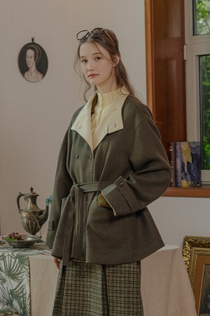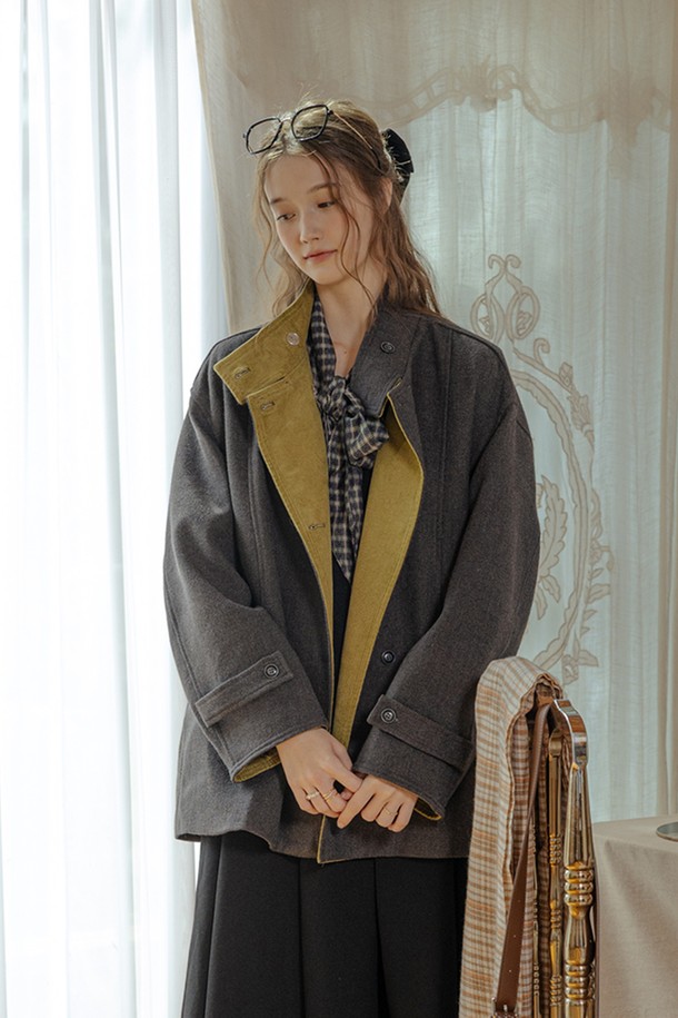Corduroy two-tone patchwork coat_2color