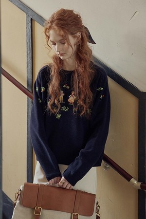 Embroidery pullover sweater_2color