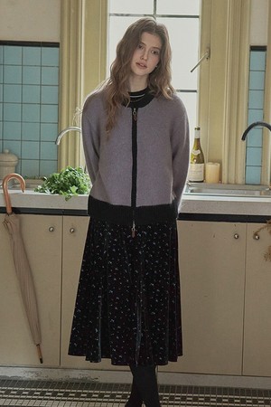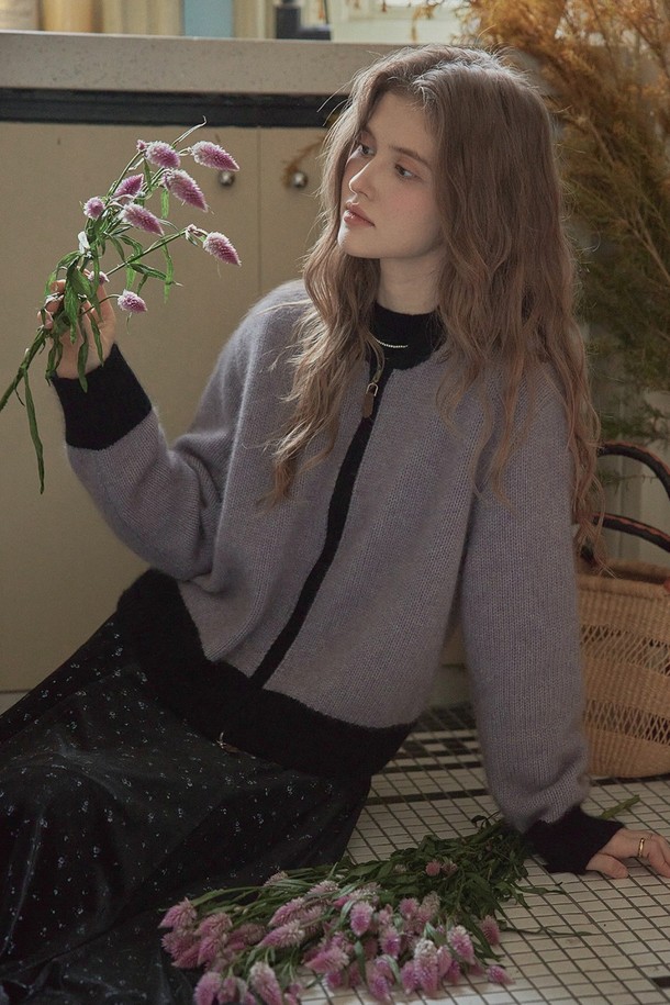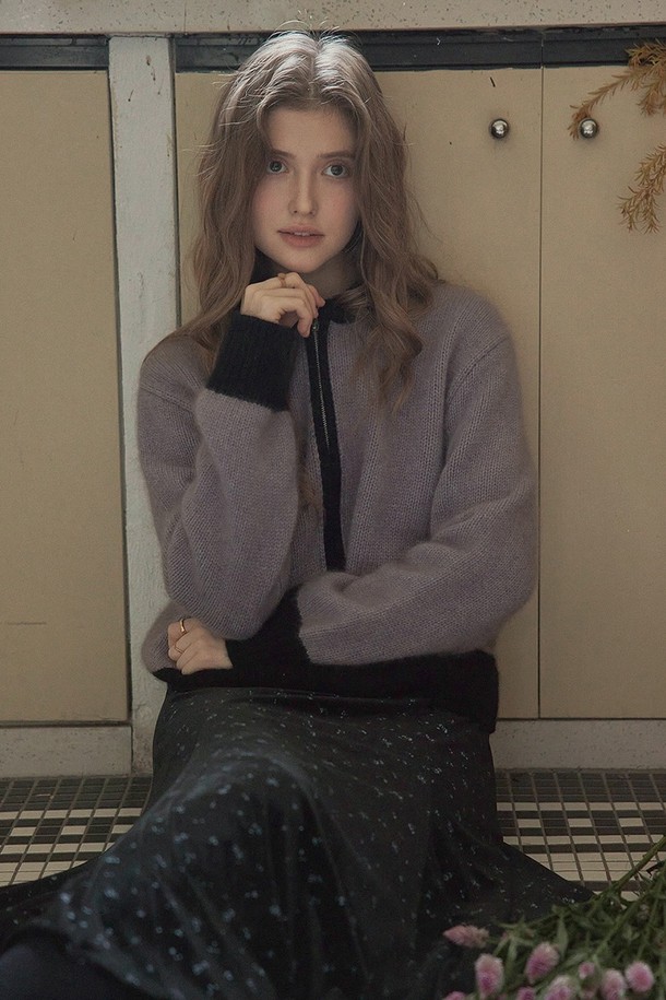 Color block zip-up cardigan