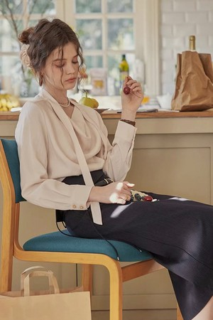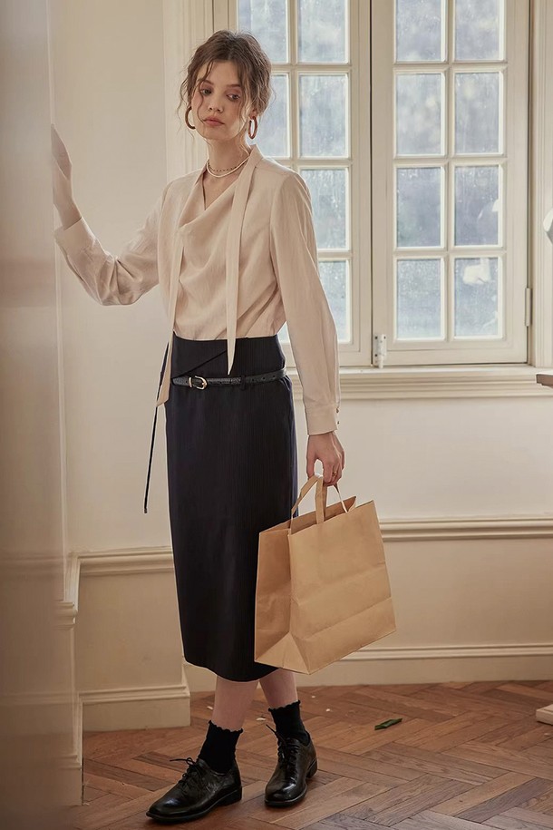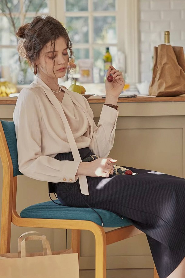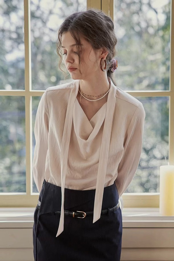 Draped tie neck blouse