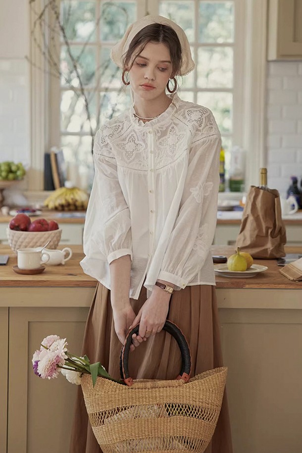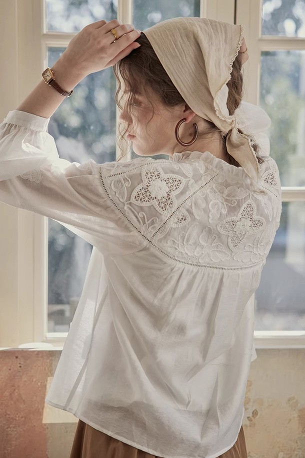 Embroidery button blouse