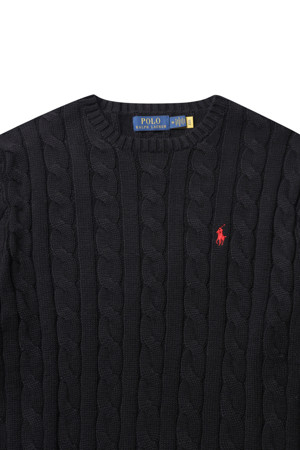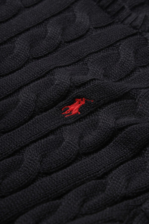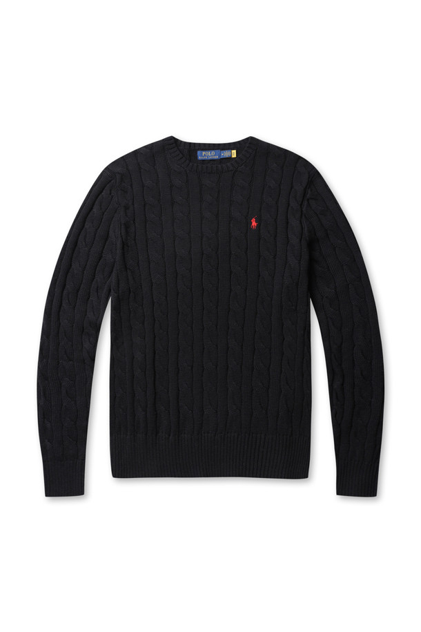 CABLE-KNIT COTTON SWEATER - POLO BLACK