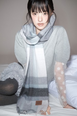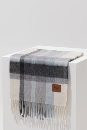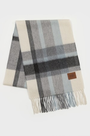MUNM CHECK CASHMERE 100% MUFFLER GRAY