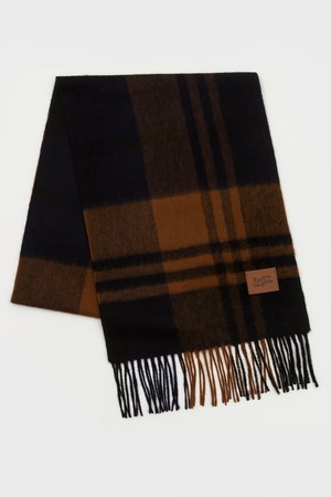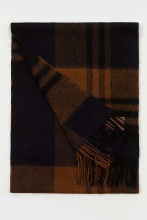 MUNM CHECK CASHMERE 100% MUFFLER CAMEL