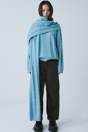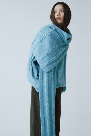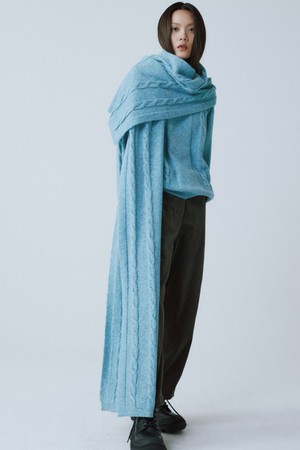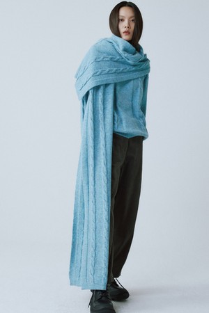 TURQUOISE BLUE WOOL BLEND CABLE MUFFLER