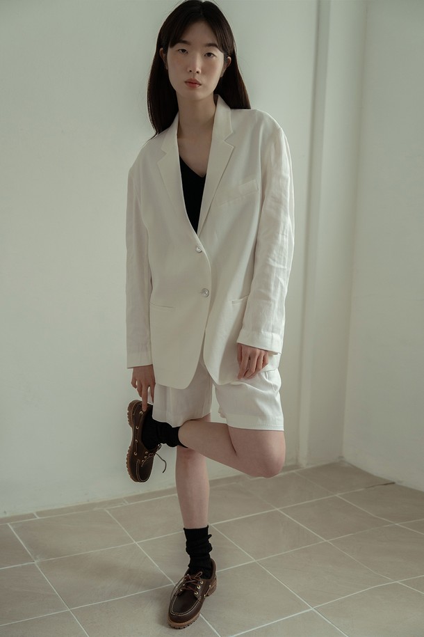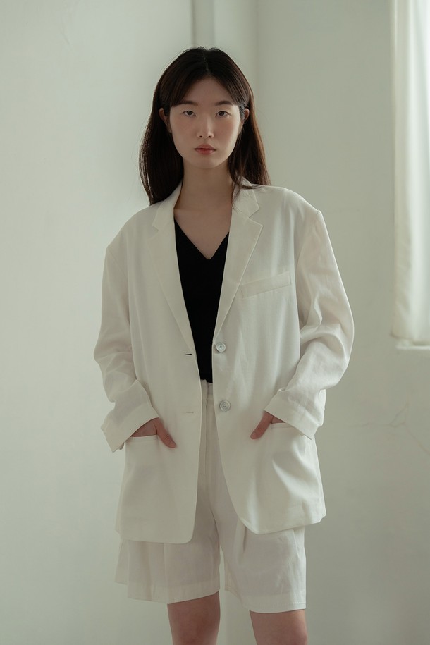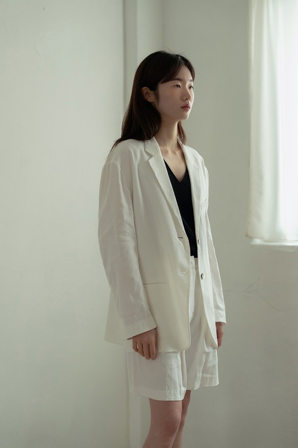 LINEN BLEND SINGLE JACKET_OFF WHITE