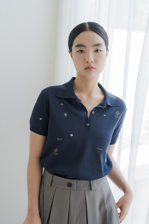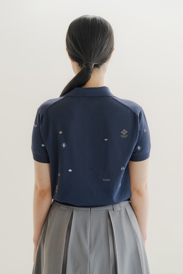 PATTERNED COLLAR KNIT TOP_DARK NAVY