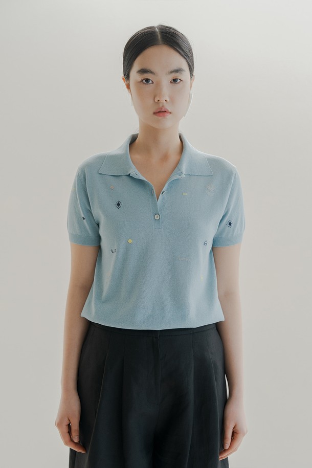 PATTERNED COLLAR KNIT TOP_LIGHT BLUE