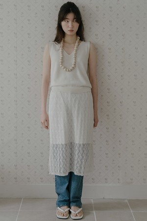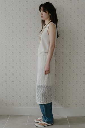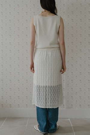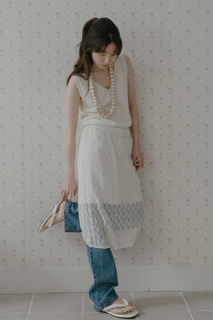 VISCOSE BLENDED LACE LAYERED SKIRT_CREAM