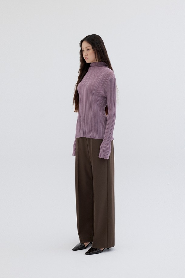HIGH NECK RIB KINT TOP_SMOKE PINK