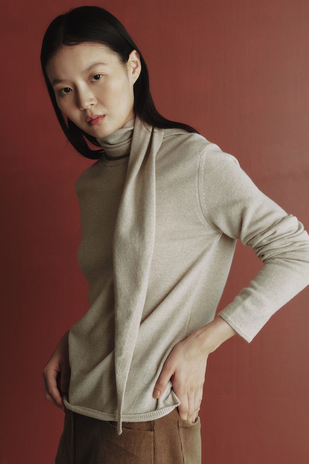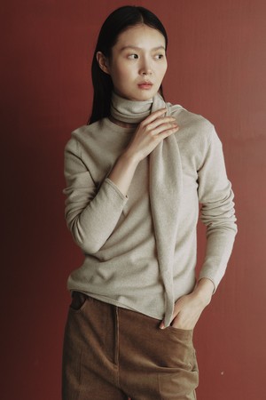 CASHMERE 30 KNIT TOP & MUFFLER _PALE BEIGE