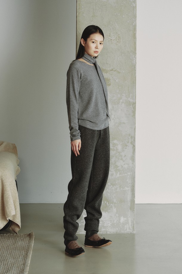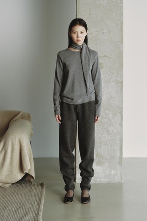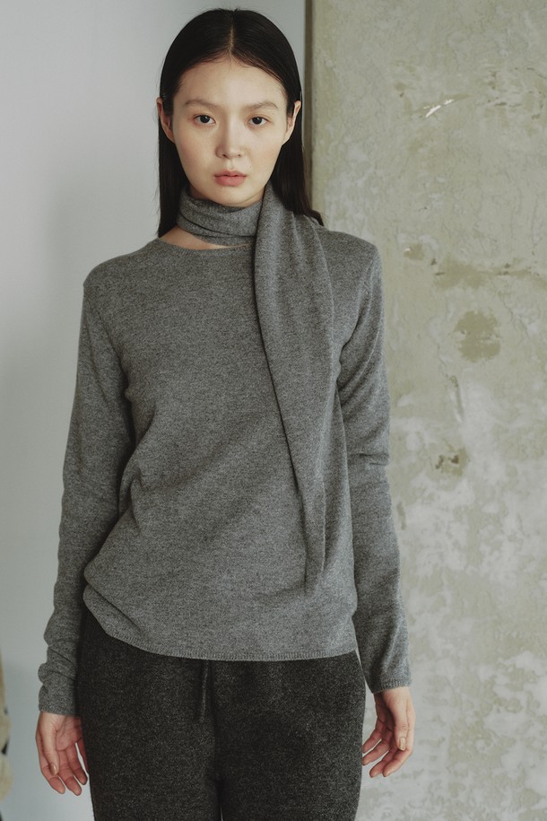 CASHMERE 30 KNIT TOP & MUFFLER _GREY