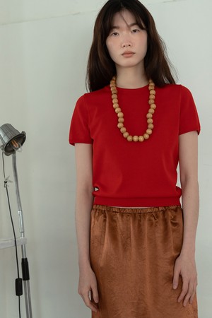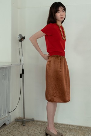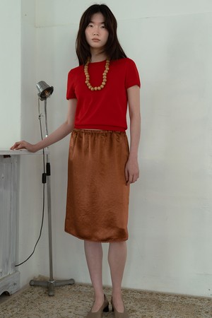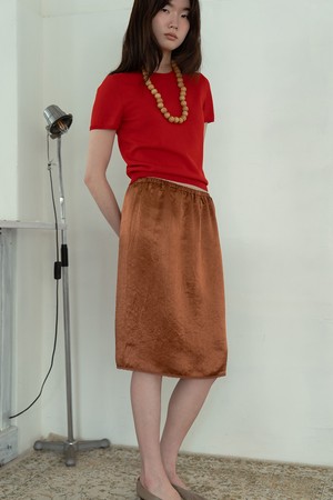 LACE TRIMMING SATIN SKIRT_CAMEL