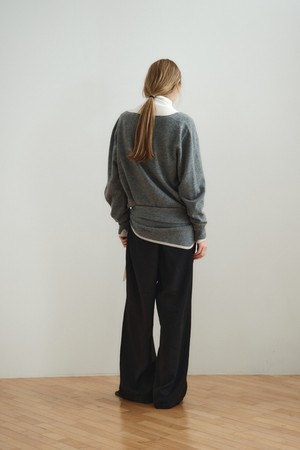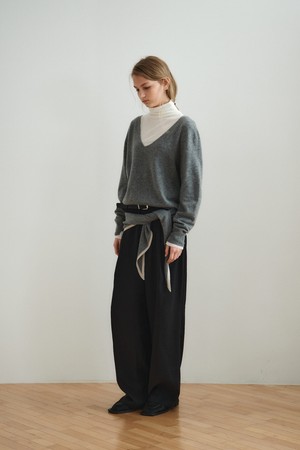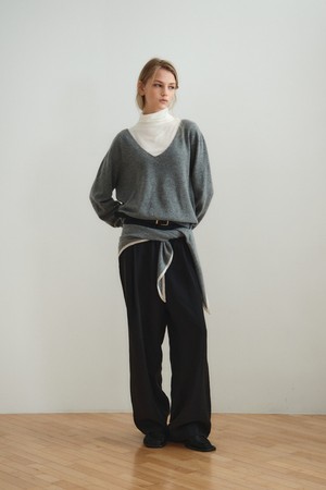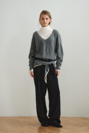 WOOL CASHMERE DEEP V-NECK TOP_GREY