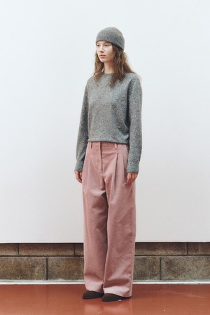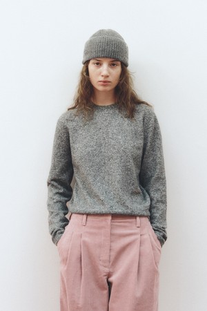 SOFT WOOL ROUND-NECK KNIT TOP_GREY
