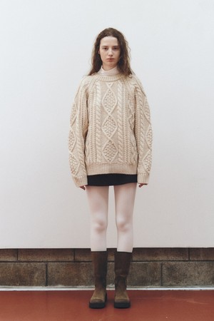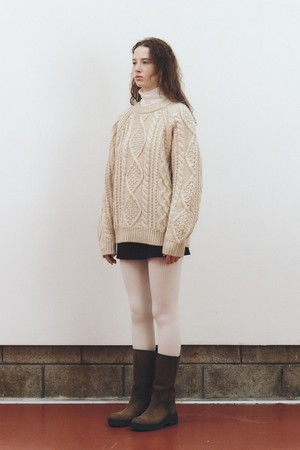 FISHERMAN CABLE WOOL SWEATER_LIGHT BEIGE