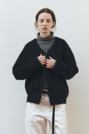 SOFT HAIRY TEXTURE CARDIGAN_BLACK