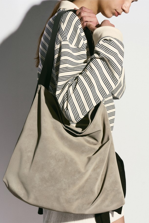COWHIDE STRAP HOBO BAG GRAY
