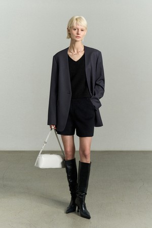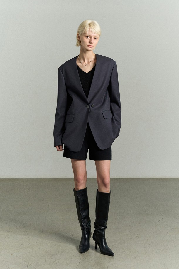 SHOULDER PADDED COLLARLESS JACKET