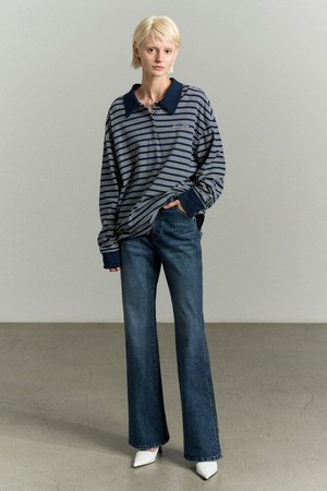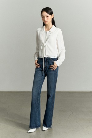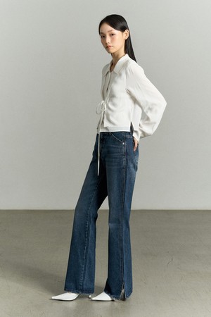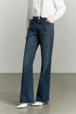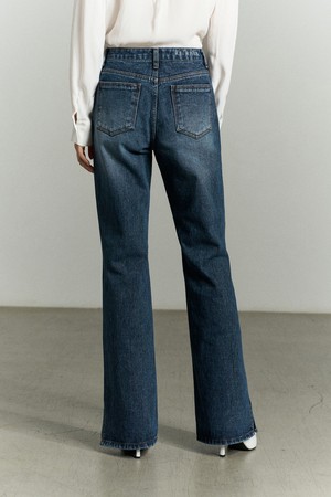 SLIT-HEM BOOTCUT DENIM JEANS WASHED BLUE