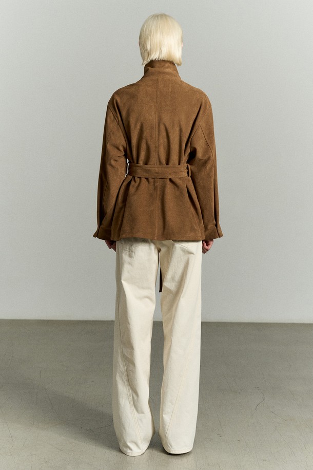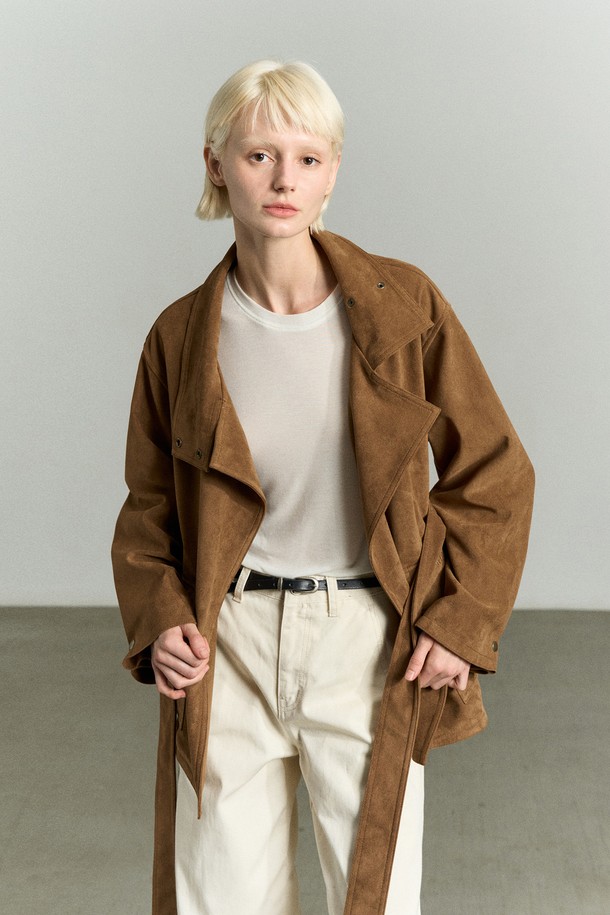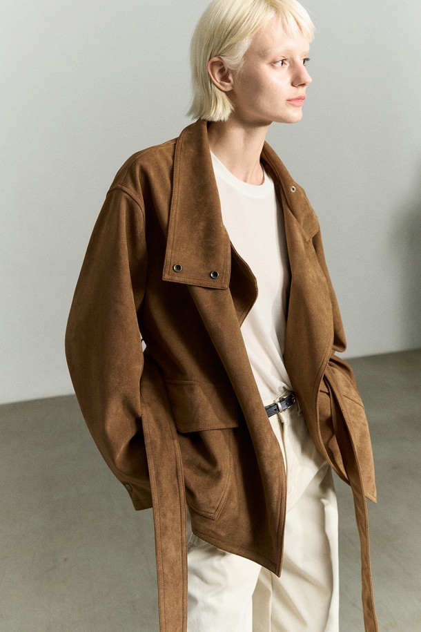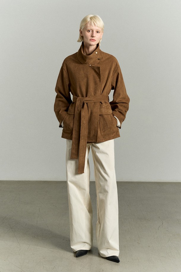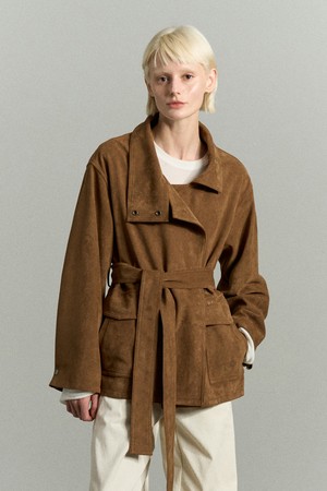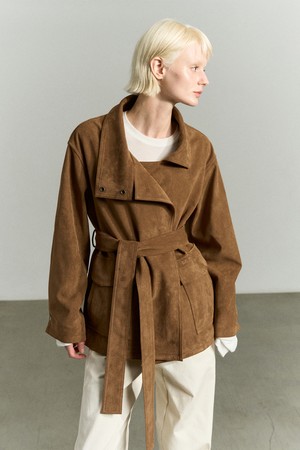 SUEDE FUNNEL NECK JACKET CAMEL BROWN