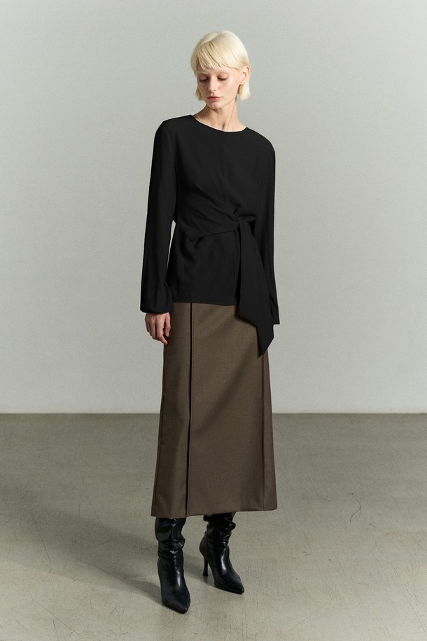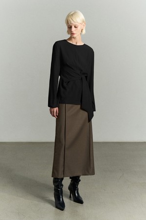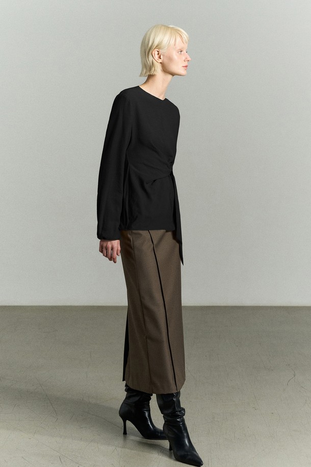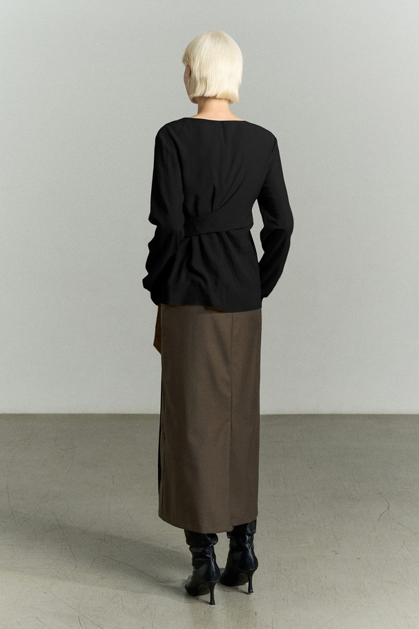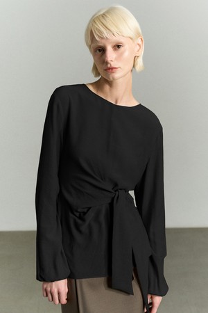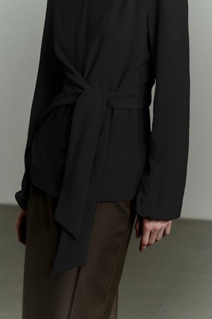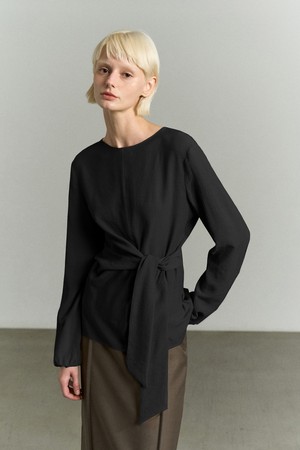 ROUND NECK SIDE STRAP BLOUSE BLACK