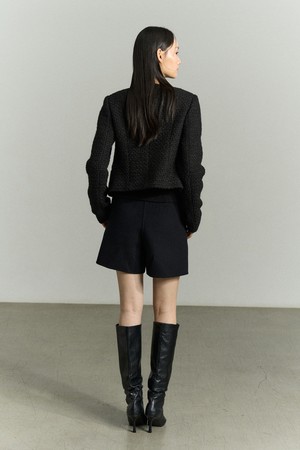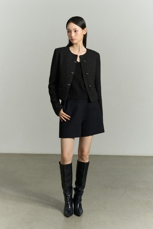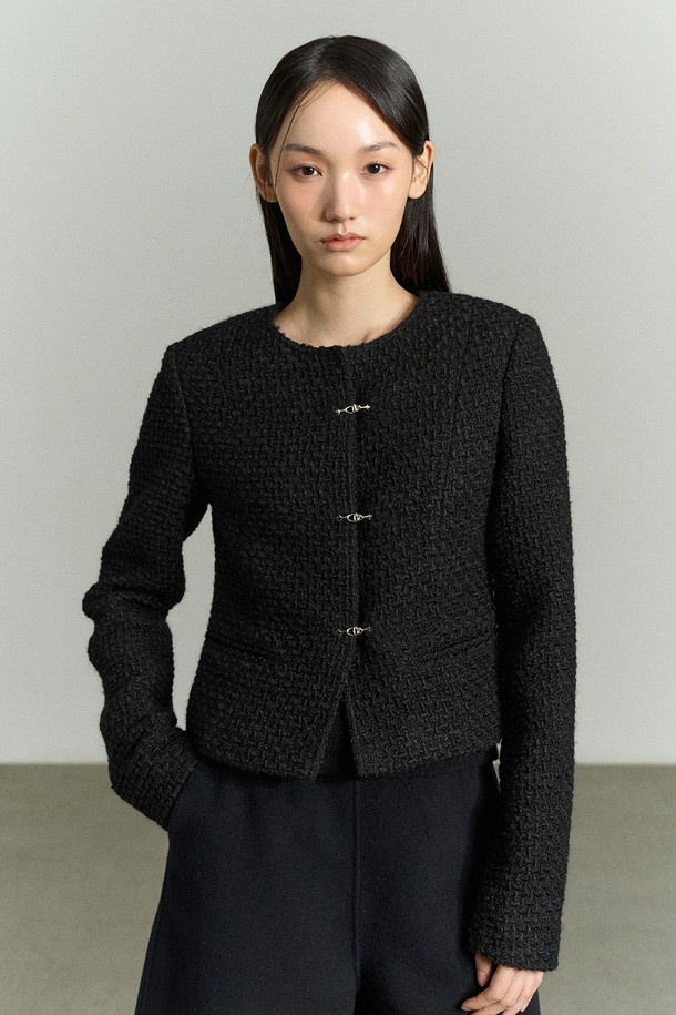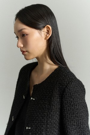 WOOL BLEND TOGGLE-FASTENING TWEED JACKET BLACK