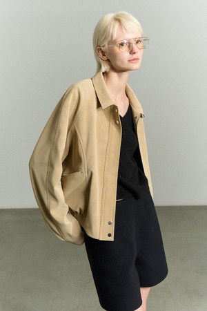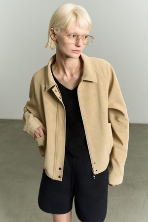 SNAP BUTTON FAUX LEATHER JACKET CINNAMON