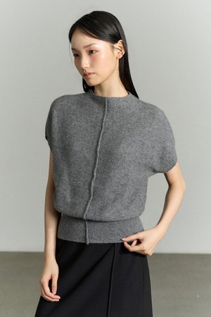 RACOON WOOL HALF SLEEVE TOP GRAY