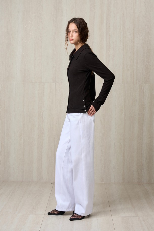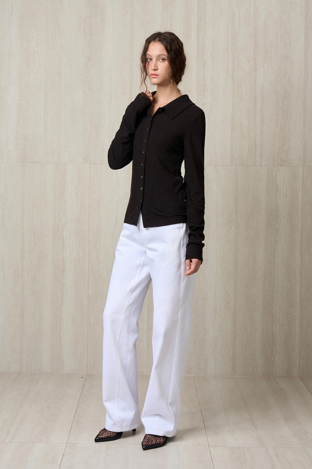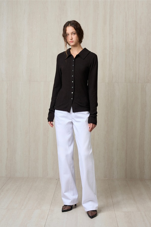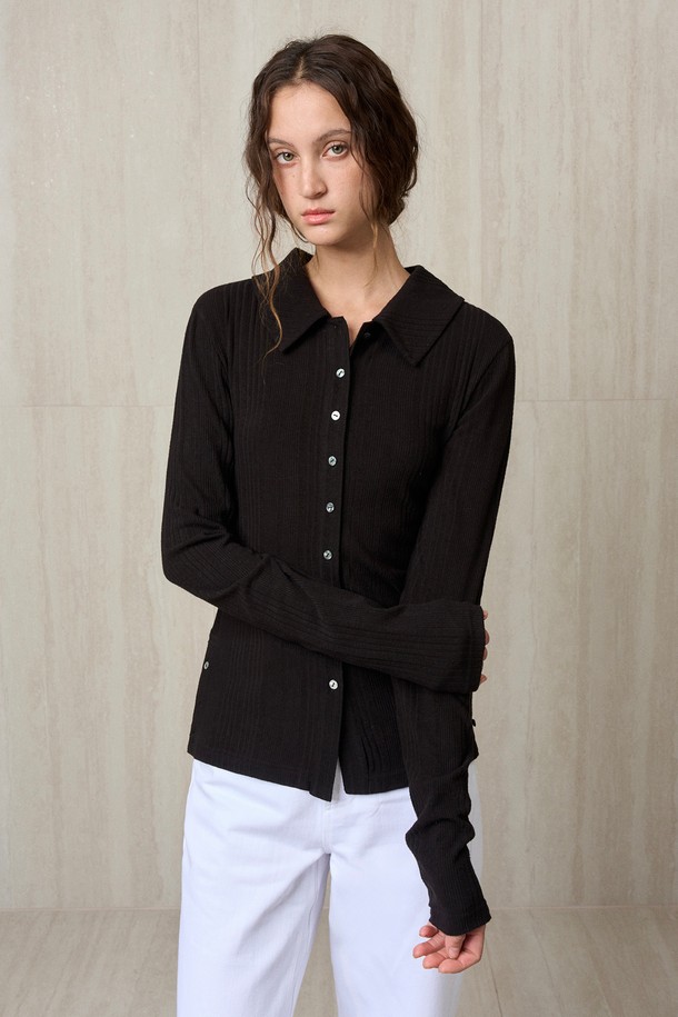 KNIT RIBBED SHIRT TOP BLACK