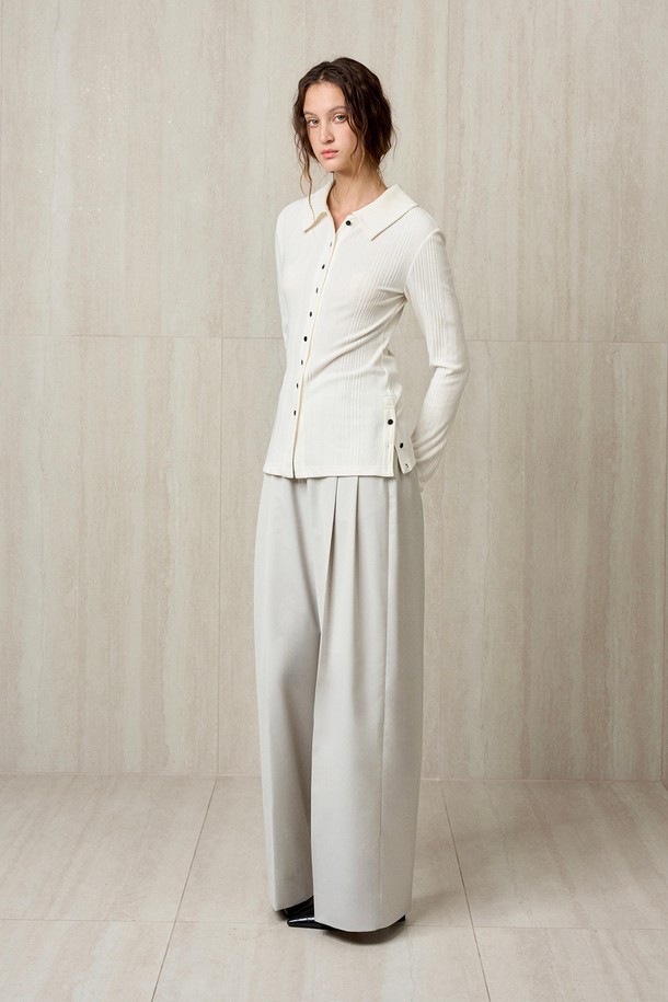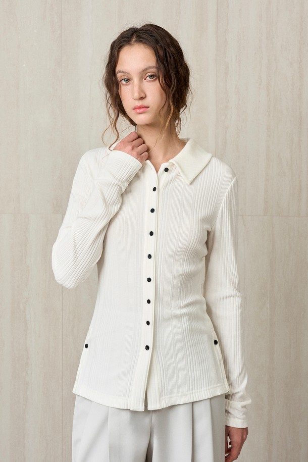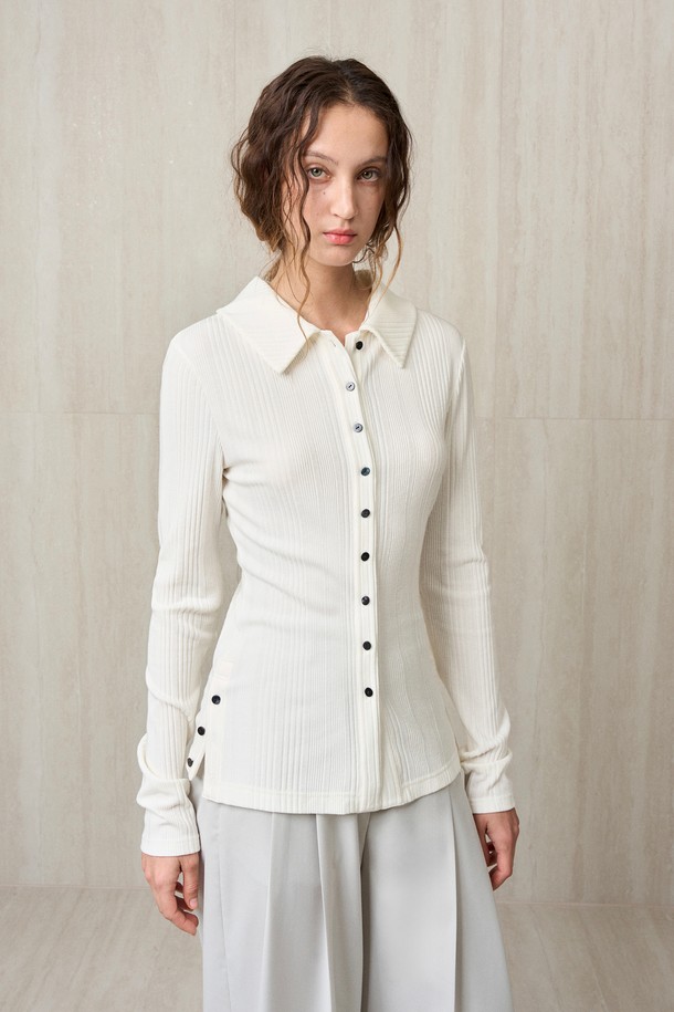 KNIT RIBBED SHIRT TOP IVORY