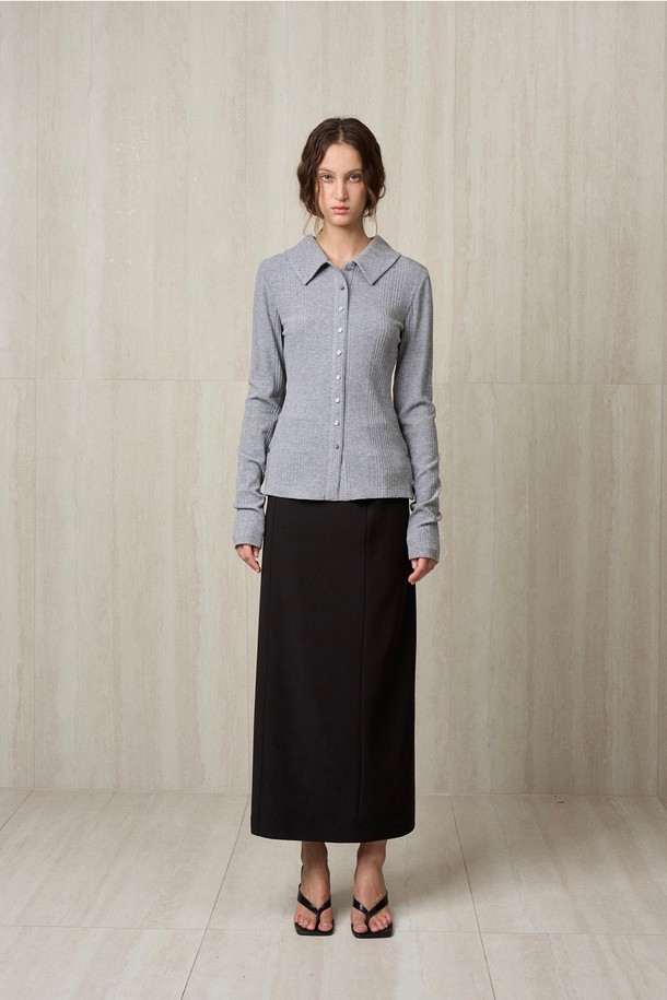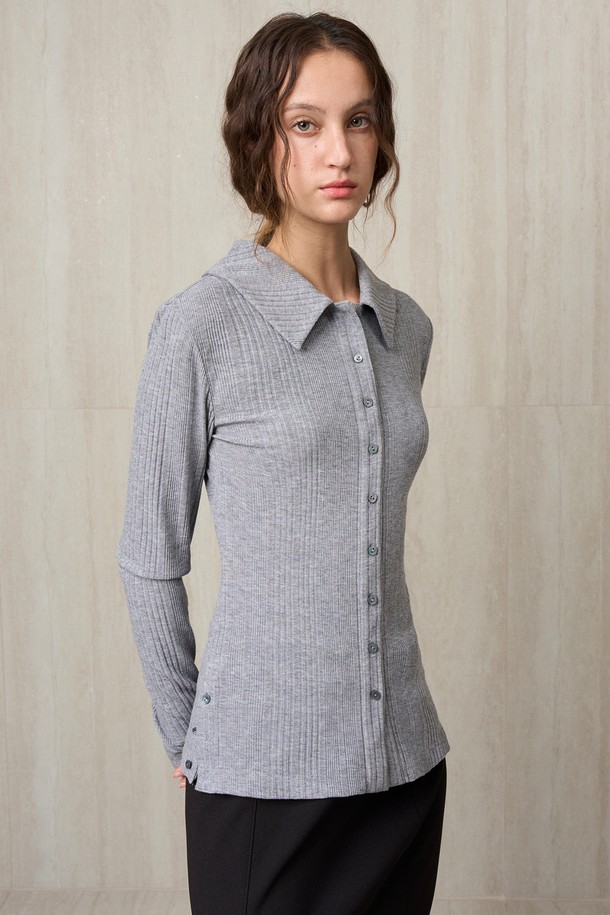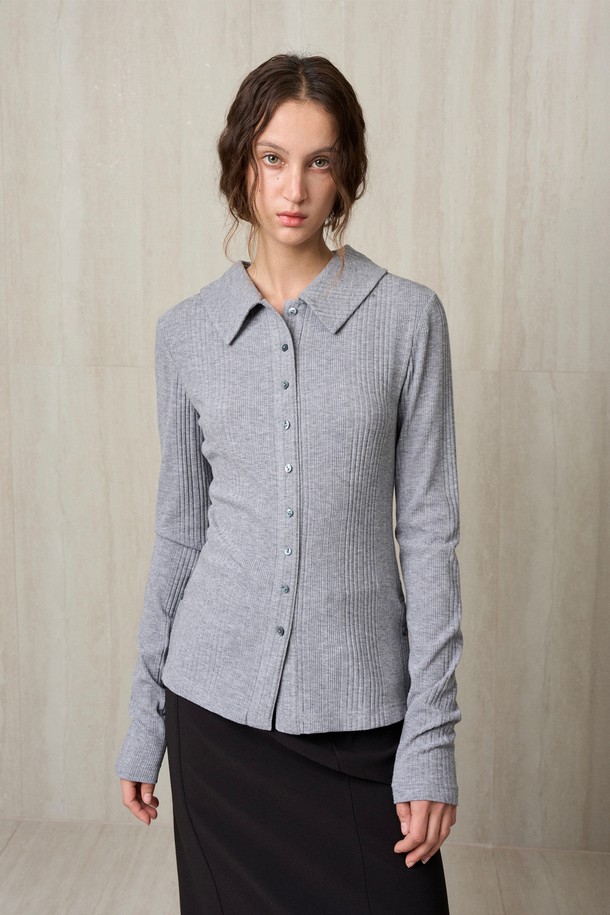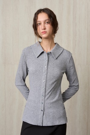 KNIT RIBBED SHIRT TOP MELANGE GRAY
