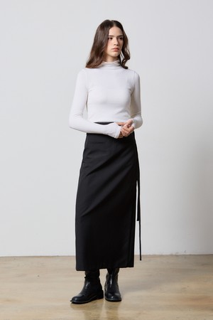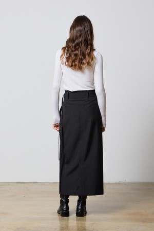 WOOL FRONT POCKET BELT LONG SKIRT BLACK F5