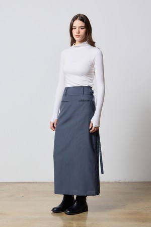 WOOL FRONT POCKET BELT LONG SKIRT BLUE F5