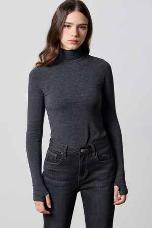 WARMER ANGORA HIGH NECK TOP CHARCOAL F5