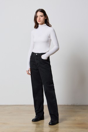 DENIM LONG STRAIGHT PANTS BLACK W5