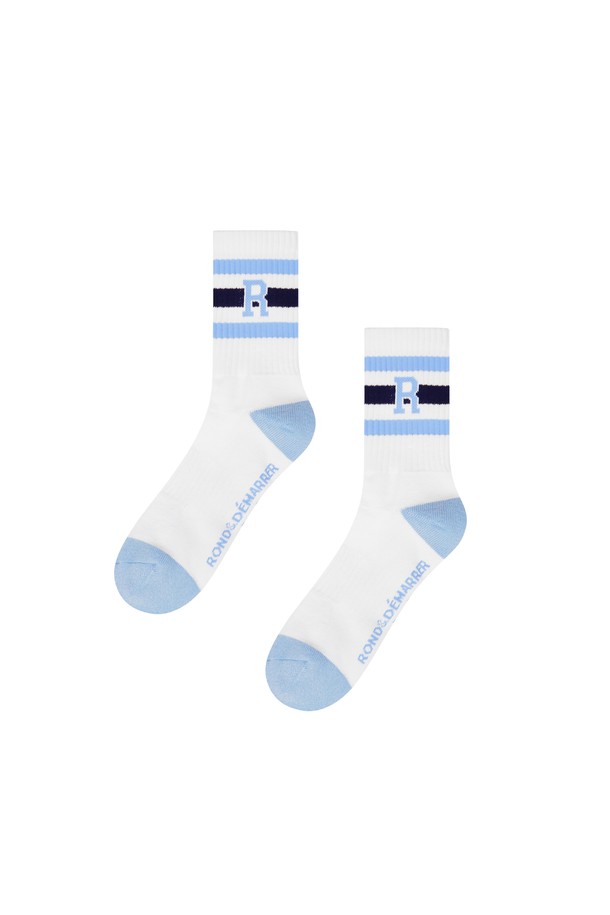 [남녀공용] 컬러블록 R자수 장목 양말 (스카이블루)