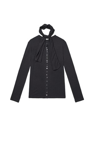 MANY BUTTONS SCARF CARDIGAN (Black)