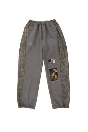 DENIM PANELED SWEATPANTS (Grey)