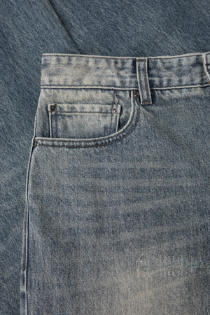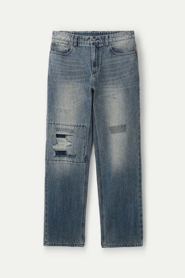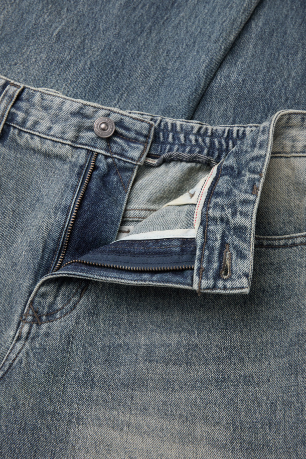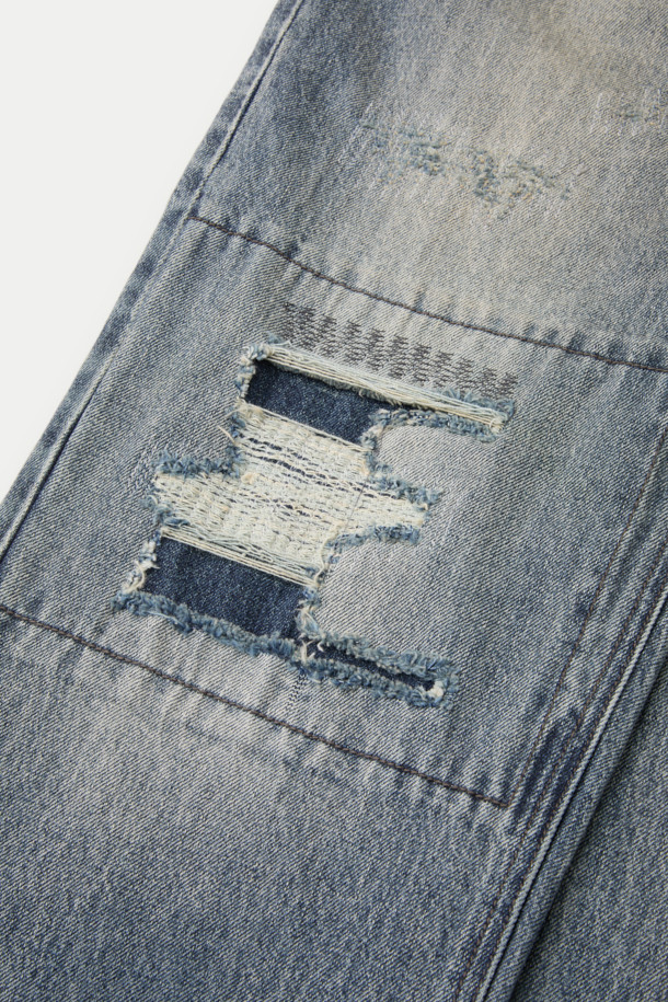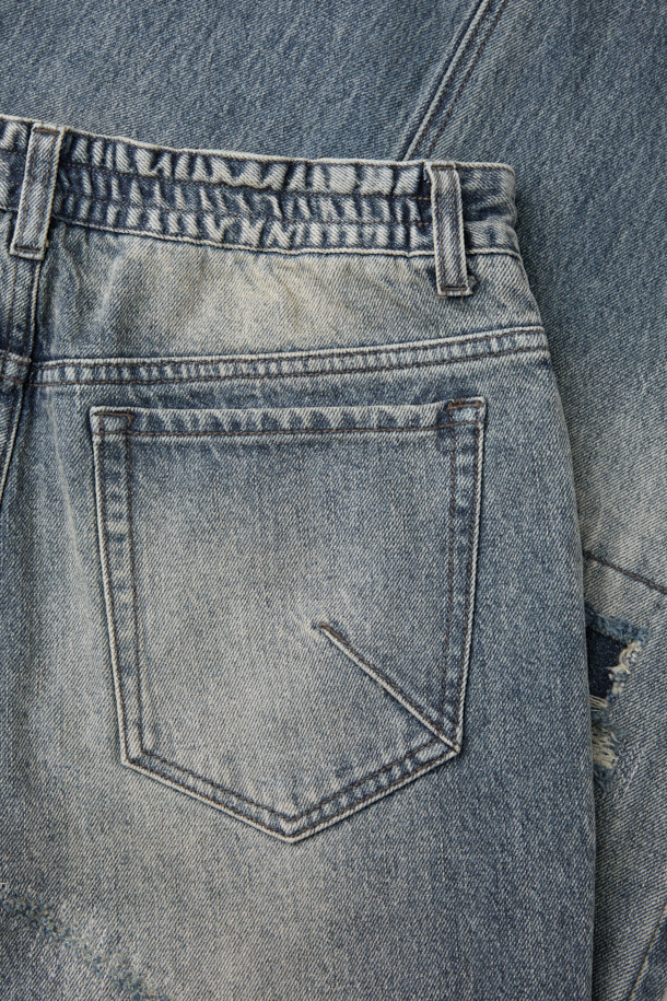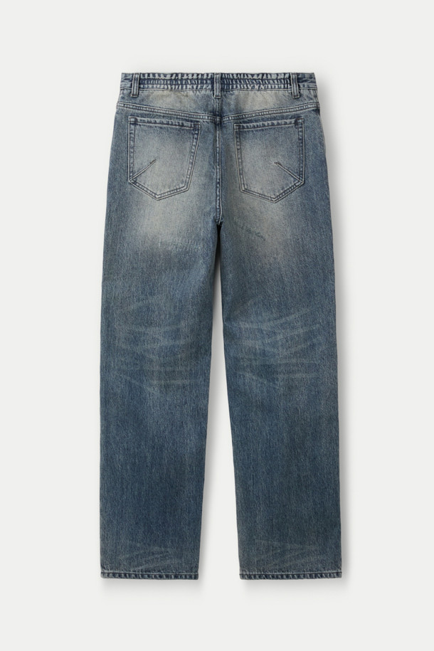데미지 루즈 스트레이트 밴딩 데님