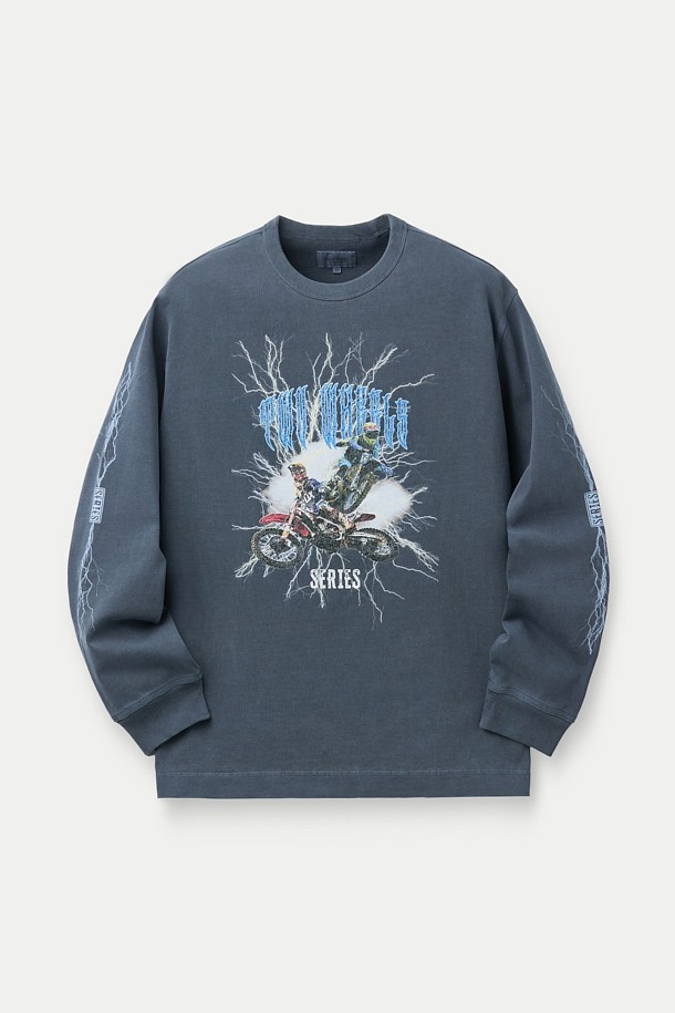 모터사이클 프린팅 긴팔 티셔츠